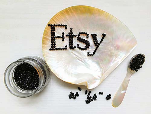 Through its Etsy store, PlanetVintageEU of Tallinn, Estonia, sells photographs of custom messages made of caviar placed on mother-of-pearl. Photo by PlanetVintageEU.
