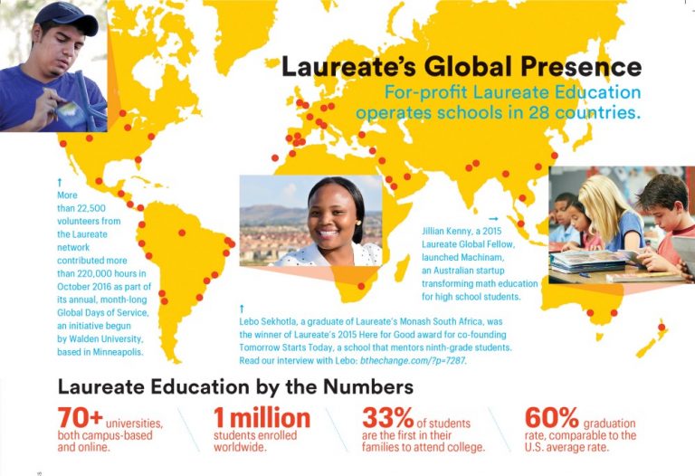 As one of the two publicly traded B Corps in the U.S., Etsy could continue to blaze a trail as a publicly traded benefit corporation. The company won’t disclose its plans. At the time of its IPO, Laureate, a global network of for-profit colleges (see map below), reported revenue of about $4.2 billion in 2015 and was both a B Corp and a benefit corporation. But, Laureate was facing challenges: The company was heavily in debt and dealing with a whistleblower complaint from a former executive.