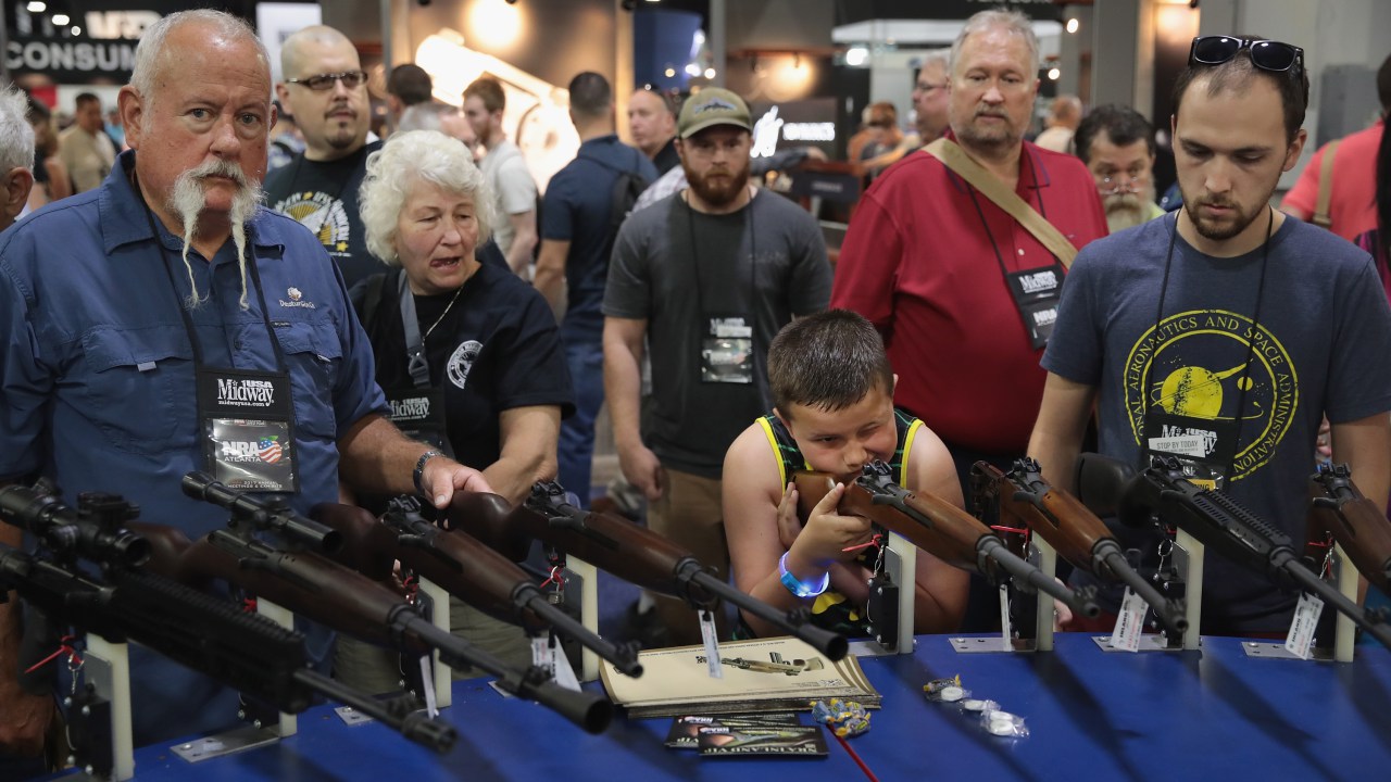 National Rifle Association members visit exhibitor booths at the 146th NRA Annual Meetings & Exhibits on April 29, 2017 in Atlanta, Georgia. CREDIT: Scott Olson/Getty Images