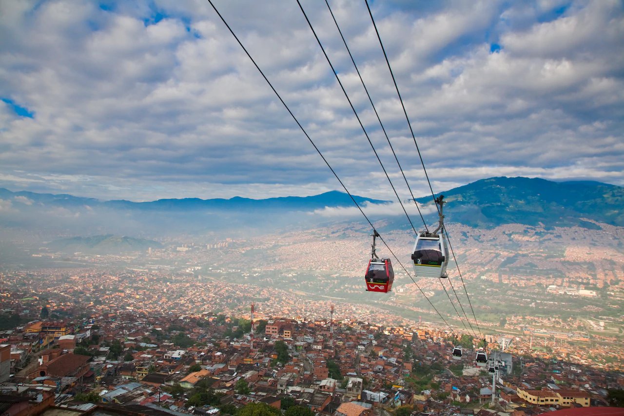 They could have done with cable cars. They are the best part of Medellin’s new transport system. Connecting to the metro, the cable cars are the answer to the steep streets of the labyrinthine barrios that climb the mountain sides above the city centre. They carry passengers aloft above the rooftops and the congested lanes in glass pods.