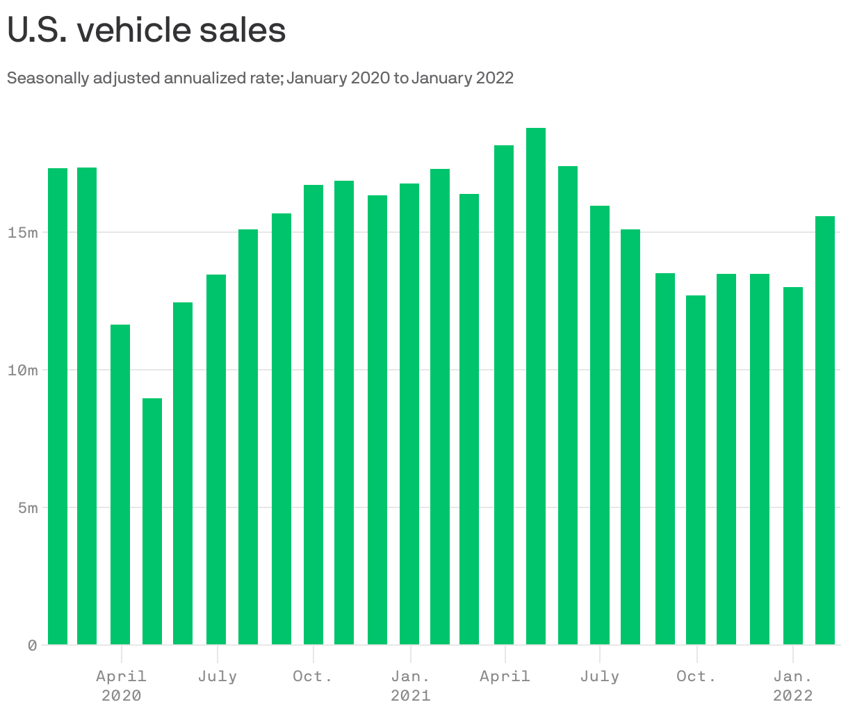 Original article: 🍁 All eyes on convoy in Canada Just as American auto manufacturers showed signs of momentum in beating back supply chain snarls, Canadian anti-vaccine protestors are blocking a key connection to Detroit, Matt writes. Driving the news: The convoy of Canadian truckers that shut down Ottawa recently to protest vaccination requirements and public health measures closed a key bridge connecting Canada to the U.S. for a fourth day today. Why it matters: The Ambassador Bridge — which connects Windsor, Ontario, to Detroit — carries 25% of all trade between the two countries, according to the AP. Context: The chaos along the typically placid border comes just as the American auto industry — which depends on suppliers and producers in both countries — starts to shake-off supply chain-related woes.