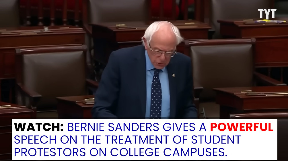 Senator Bernie Sanders directly calls out and disses CNN with a tremendous, powerful floor speech on the treatment of student protestors on college campuses. Sanders delivers a masterclass by bringing up the First Amendment, the humanitarian crisis in Gaza, the destruction and loss of Palestinian lives in the Israel-Hamas War and so much more.